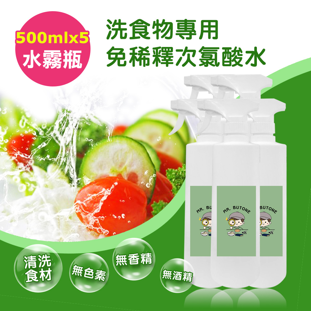 咘酮-洗食物專用免稀釋次氯酸水500mlx5瓶(奶瓶蔬果 蔬果清潔 食品清潔)