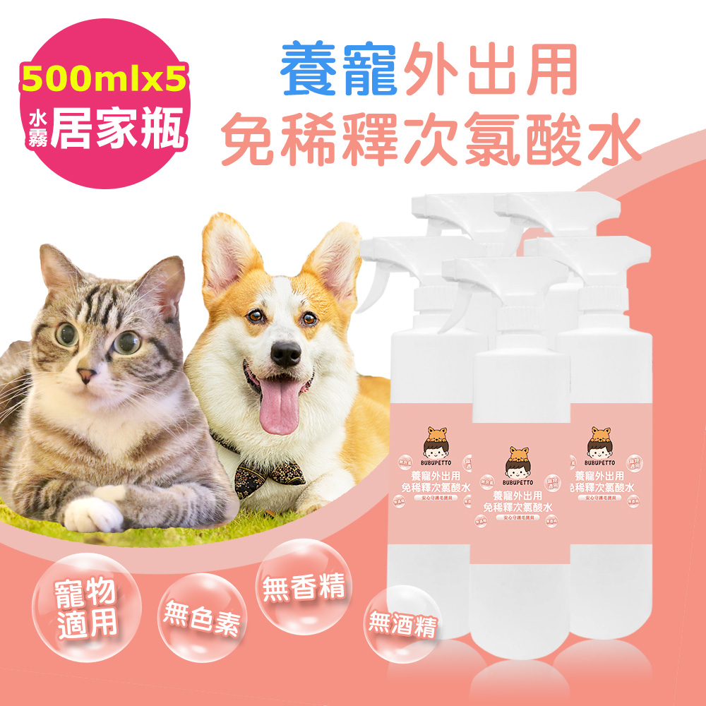 BUBUPETTO-毛孩外出用免稀釋次氯酸水500mlx5瓶(毛小孩 寵物 用品)