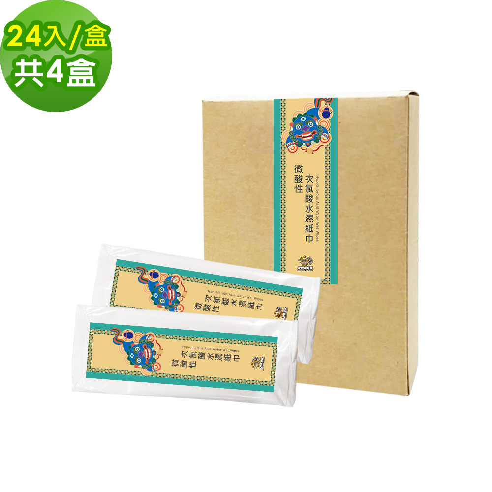 金門邁全球-次氯酸水微酸性濕紙巾24片x4盒(環境 衛生 清潔)