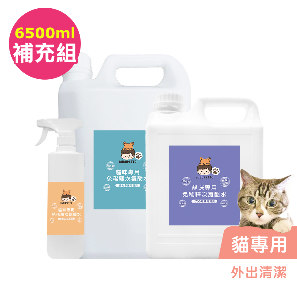 BUBUPETTO-貓咪外出清潔用免稀釋次氯酸水-6000mlx1+500mlx1(寵物 環境 器皿 用品)