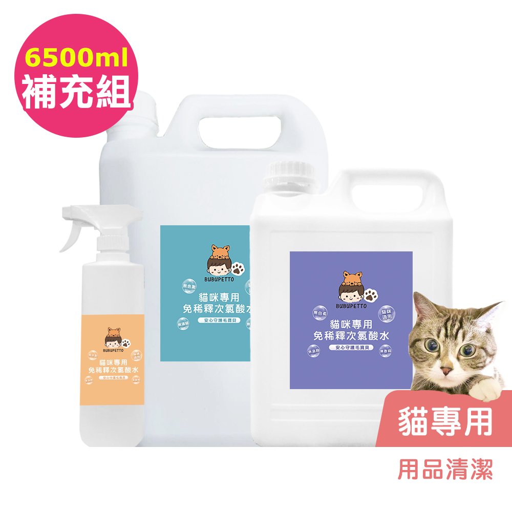 BUBUPETTO-貓咪用品清潔用免稀釋次氯酸水-6000mlx1+500mlx1(寵物 環境 器皿 用品)